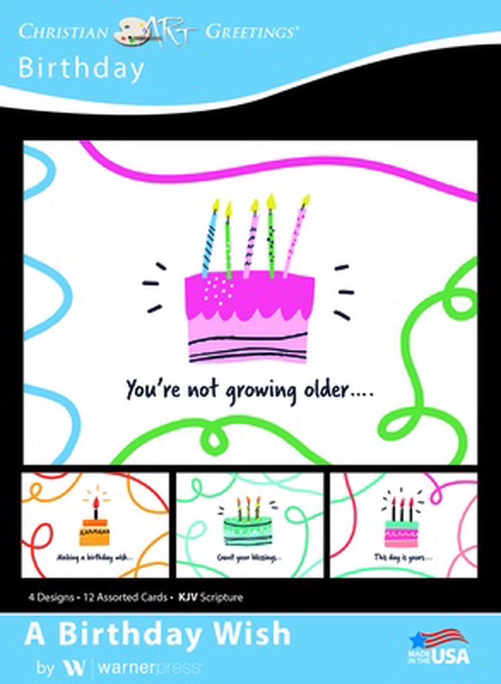 Make a wish and celebrate the life of someone special with these bright, whimsical cards. Appropriate for the young or young at heart, each card features an inside message of blessing along with a KJV Scripture.