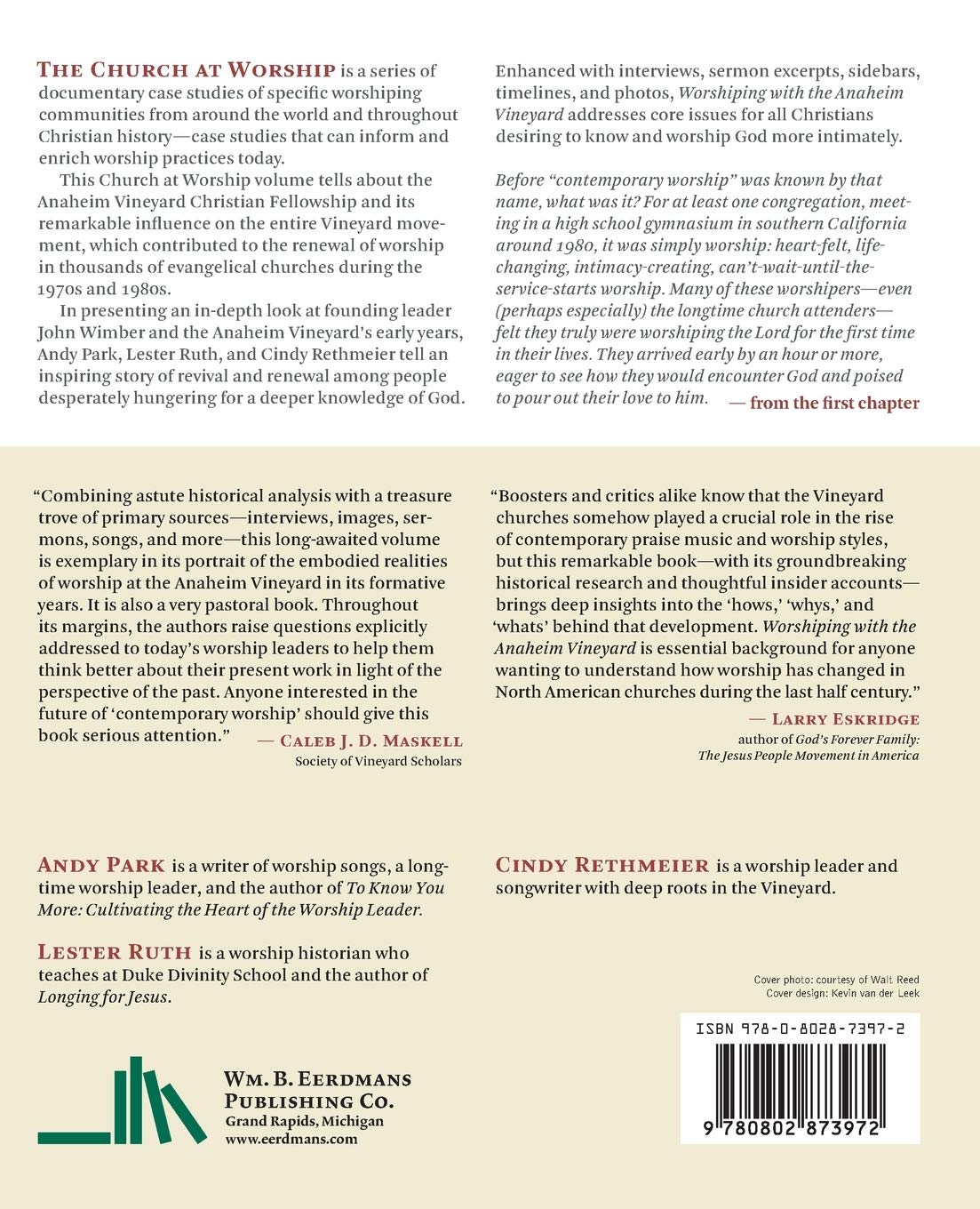 Enhanced with interviews, sermon excerpts, sidebars, timelines, and photos, Worshiping with the Anaheim Vineyard addresses core issues for all Christians desiring to know and worship God more intimately.